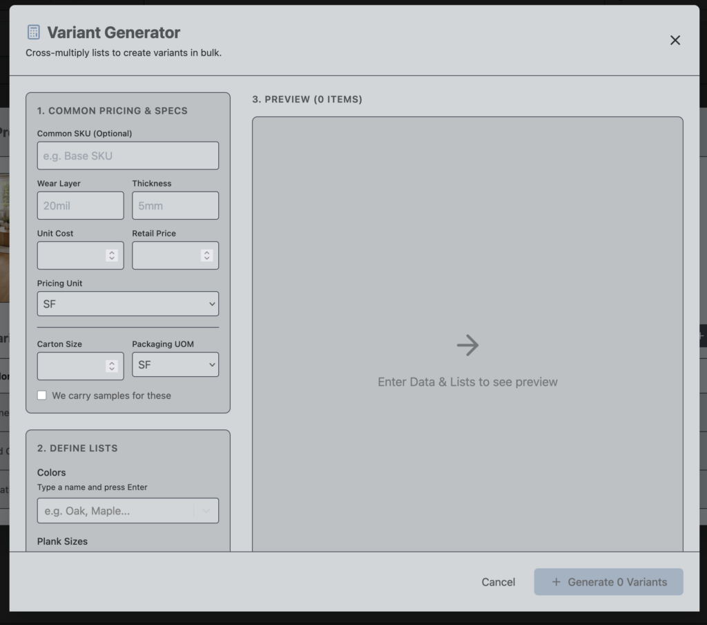 Create product lines with pricing so that you can easily see product info and sample availability.